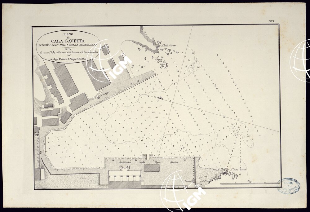 PORTOLANO DELLA SARDEGNA – CARTA IDROGRAFICA DELLA SARDEGNA LEVATA DAL CAVALIERE GIUSEPPE ALBINI CAPITANO DI VASCELLO NELLA MARINA DI S.M. SARDA – PIANO DI CALA GAVETTA TAVOLA XVI.