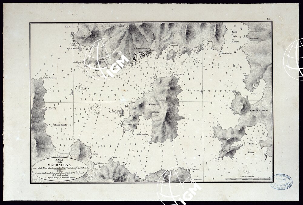 PORTOLANO DELLA SARDEGNA – CARTA IDROGRAFICA DELLA SARDEGNA LEVATA DAL CAVALIERE GIUSEPPE ALBINI CAPITANO DI VASCELLO NELLA MARINA DI S.M. SARDA – RADA DELLA MADDALENA TAVOLA XV.