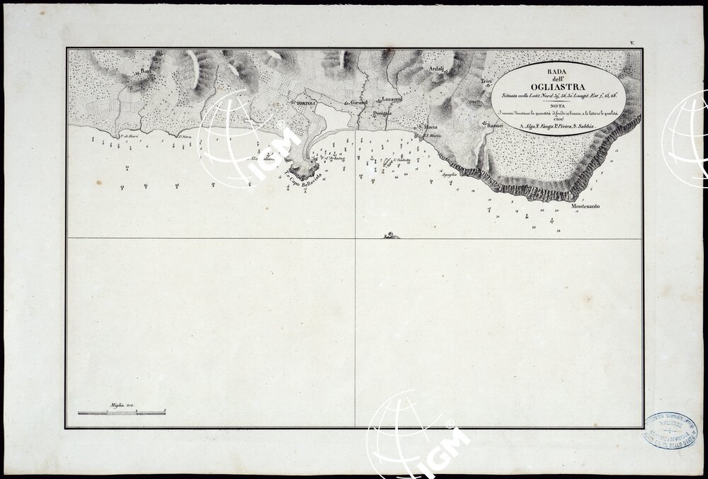 PORTOLANO DELLA SARDEGNA – CARTA IDROGRAFICA DELLA SARDEGNA LEVATA DAL CAVALIERE GIUSEPPE ALBINI CAPITANO DI VASCELLO NELLA MARINA DI S.M. SARDA – RADA DELL’ OGLIASTRA TAVOLA V.