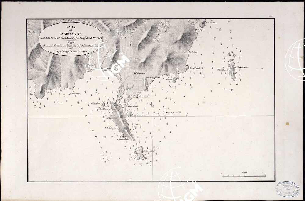PORTOLANO DELLA SARDEGNA – CARTA IDROGRAFICA DELLA SARDEGNA LEVATA DAL CAVALIERE GIUSEPPE ALBINI CAPITANO DI VASCELLO NELLA MARINA DI S.M. SARDA – RADA DI CARBONARA TAVOLA IV.