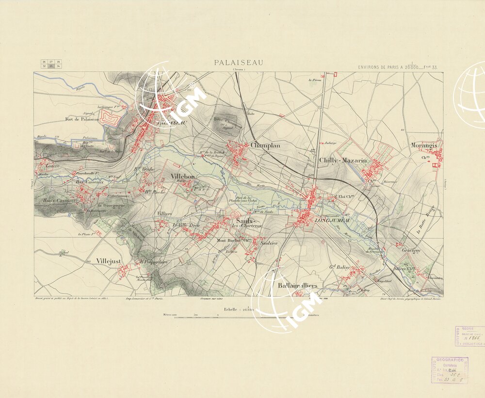 TABLEAU D’ASSEMBLAGE DES FEUILLES DE LA CARTE DU DEPARTEMENT DE LA SEINE – PALAISEAU FEUILLE 33