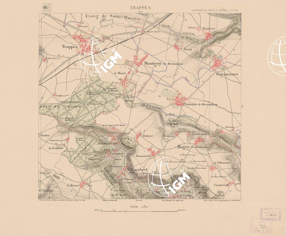 TABLEAU D’ASSEMBLAGE DES FEUILLES DE LA CARTE DU DEPARTEMENT DE LA SEINE – TRAPPES FEUILLE 25