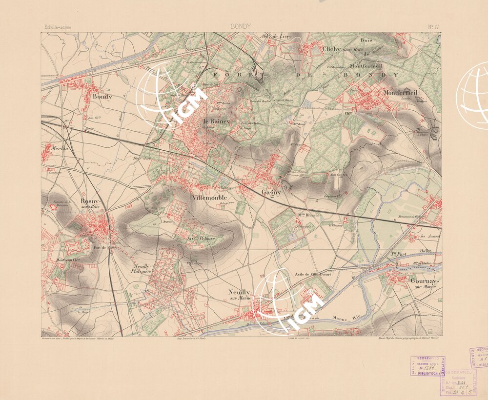 TABLEAU D’ASSEMBLAGE DES FEUILLES DE LA CARTE DU DEPARTEMENT DE LA SEINE – BONDY FEUILLE 17