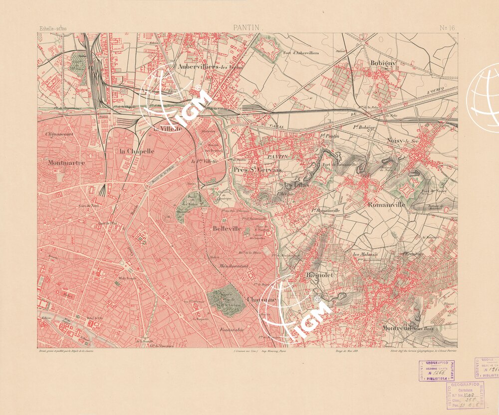TABLEAU D’ASSEMBLAGE DES FEUILLES DE LA CARTE DU DEPARTEMENT DE LA SEINE – PANTIN FEUILLE 16