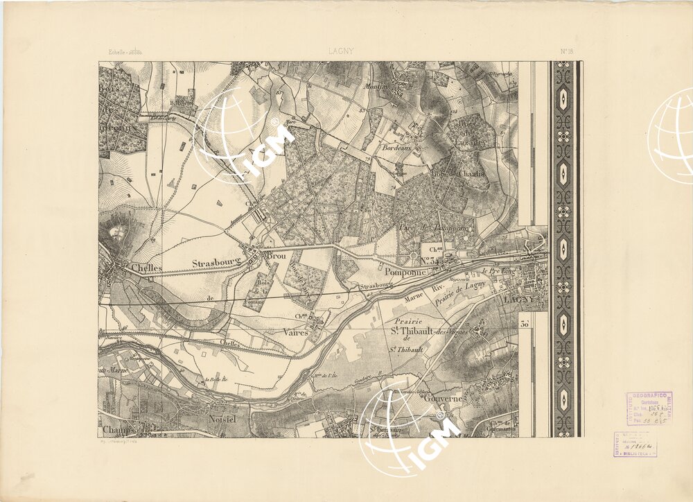 TABLEAU D’ASSEMBLAGE DES FEUILLES DE LA CARTE DU DEPARTEMENT DE LA SEINE – LAGNY N°18