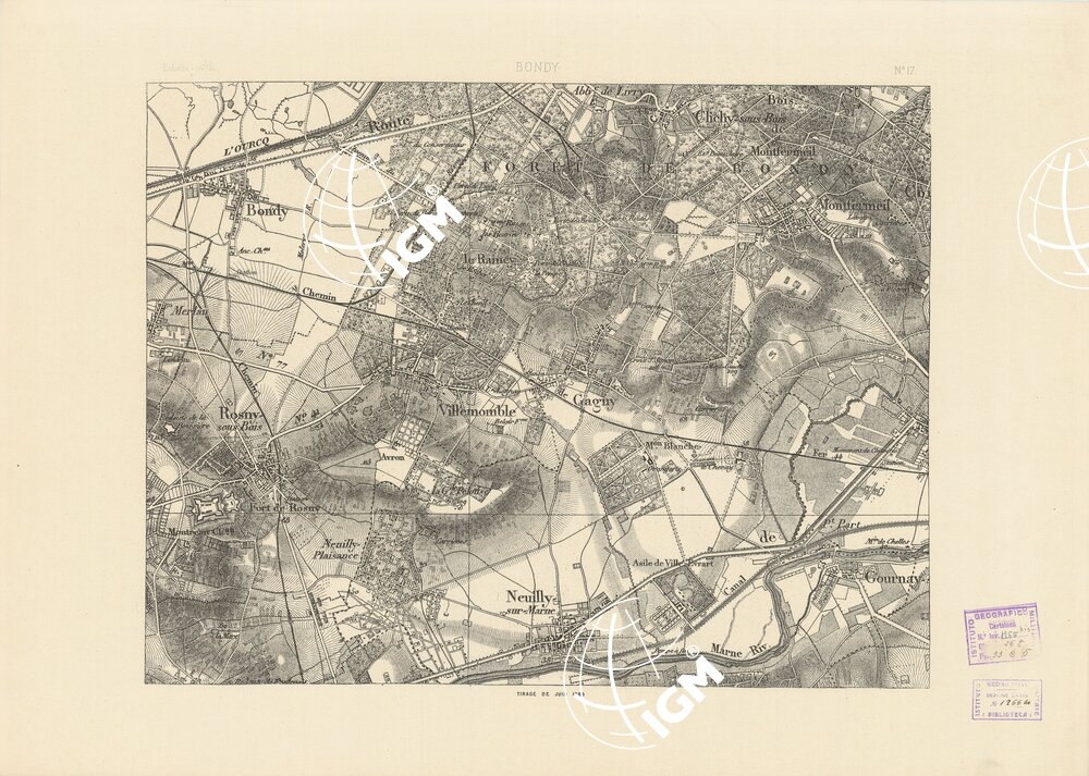 TABLEAU D’ASSEMBLAGE DES FEUILLES DE LA CARTE DU DEPARTEMENT DE LA SEINE – BONDY N°17