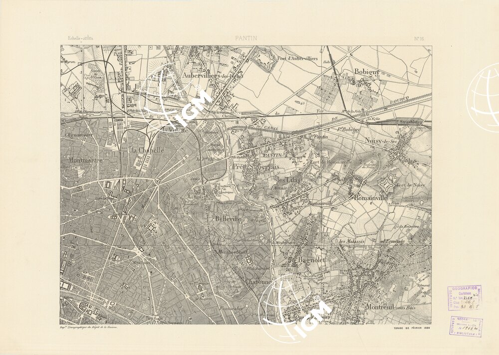 TABLEAU D’ASSEMBLAGE DES FEUILLES DE LA CARTE DU DEPARTEMENT DE LA SEINE – PANTIN N°16