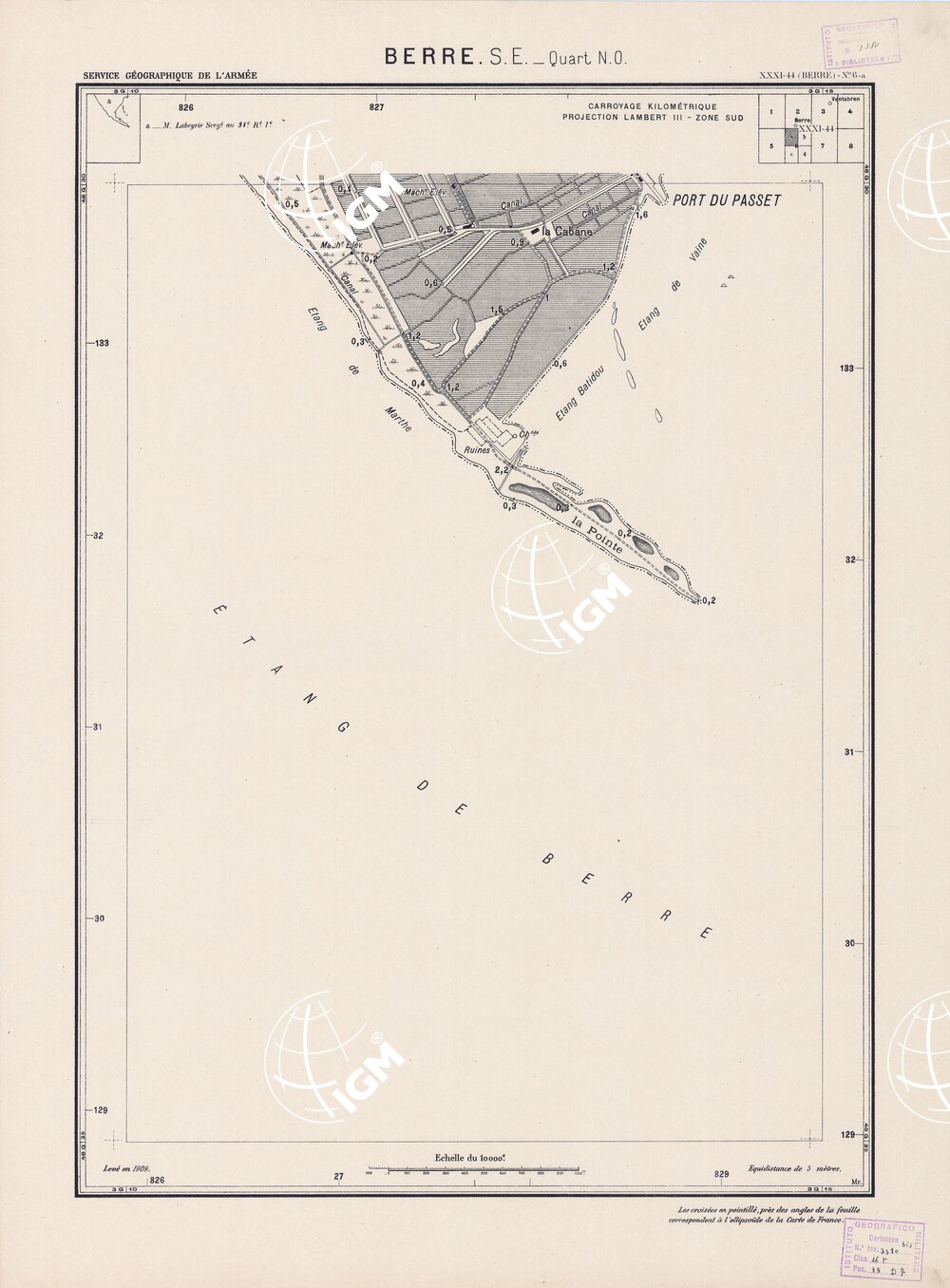 Paris. – Service Géographique de l’Arme 1914-1918. – Questi piani sono stati allestiti durante la guerra mondiale da i “Groupes de Canevas de Tir aux Armées”. Su di essi venivano riportate le sistemazioni difensive amiche e nemiche e le varie opere militari. Nelle regioni in cui esistevano le carte alla scala 1:10.000, provenienti da rilievi diretti, queste costituivano la base dei plans directeurs, mentre altrove essi erano dedotti dai piani catastali al 10.000 inquadrati nelle reti dei punti trigonometrici, introducendo per la rappresentazione dell’orografia le linee di livello ricavate dall’ingrandimento dei rilevamenti alla scala 1:40.000. Poichè con tale sistema non si aveva una esatta rappresentazione del terreno, a cura dei “Groupes de Canevas de Tir” fu provveduto, in molte zone, all’esecuzione dei rilievi regolari alla scala 1:10.000. Di tali piani esistono diverse edizioni con formato variabile: una edizione in nero con orografia rappresentata a curve di livello all’equidistanza di m.5 con quadrettatura chilometrica-sistema Lambert; altre edizioni: in nero con curve di livello in bistro, e policrome, sono senza quadrettatura.
