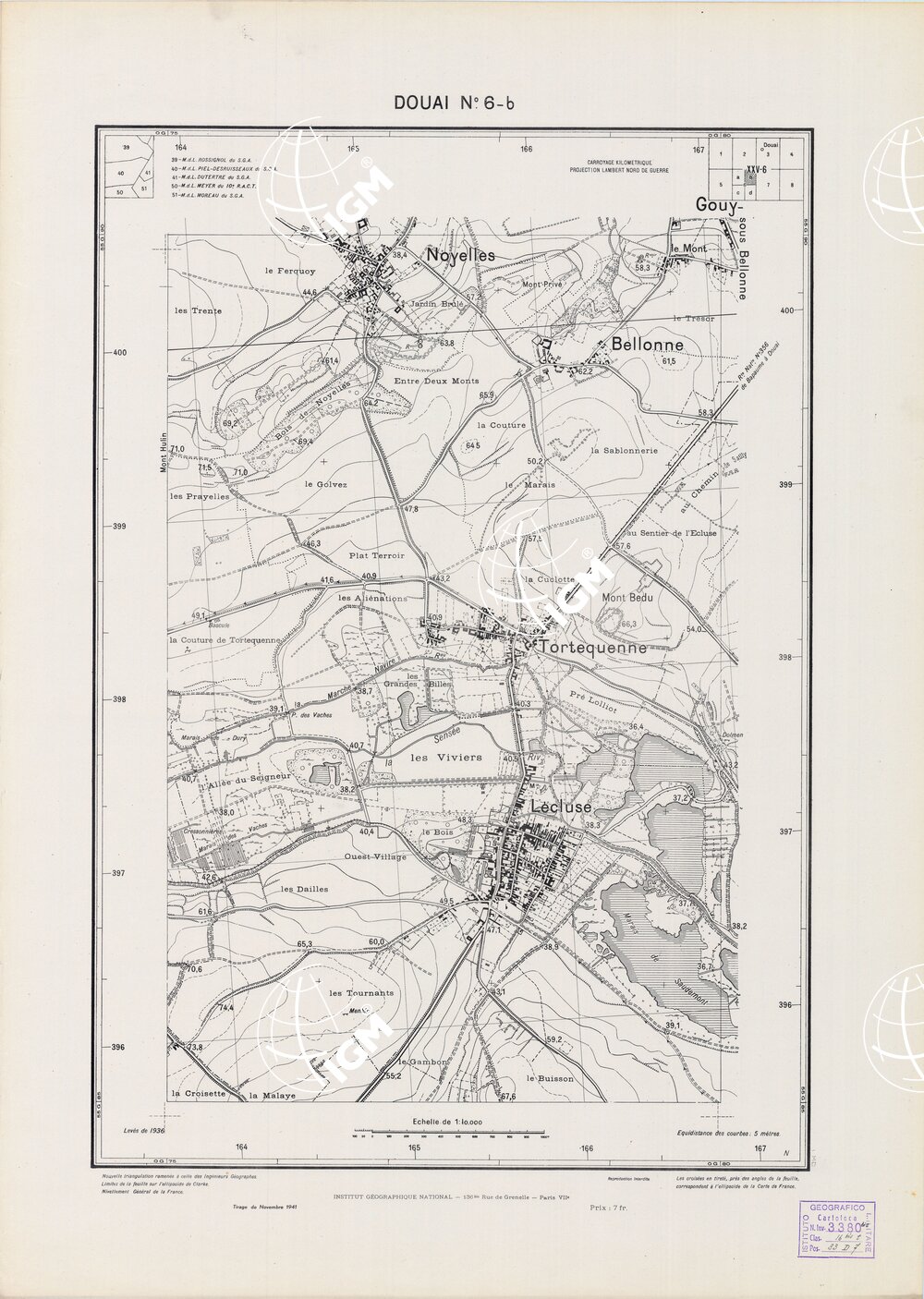 Paris. – Service Géographique de l'Arme 1914-1918. – Questi piani sono stati allestiti durante la guerra mondiale da i "Groupes de Canevas de Tir aux Armées". Su di essi venivano riportate le sistemazioni difensive amiche e nemiche e le varie opere militari. Nelle regioni in cui esistevano le carte alla scala 1:10.000, provenienti da rilievi diretti, queste costituivano la base dei plans directeurs, mentre altrove essi erano dedotti dai piani catastali al 10.000 inquadrati nelle reti dei punti trigonometrici, introducendo per la rappresentazione dell'orografia le linee di livello ricavate dall'ingrandimento dei rilevamenti alla scala 1:40.000. Poichè con tale sistema non si aveva una esatta rappresentazione del terreno, a cura dei "Groupes de Canevas de Tir" fu provveduto, in molte zone, all'esecuzione dei rilievi regolari alla scala 1:10.000. Di tali piani esistono diverse edizioni con formato variabile: una edizione in nero con orografia rappresentata a curve di livello all'equidistanza di m.5 con quadrettatura chilometrica-sistema Lambert; altre edizioni: in nero con curve di livello in bistro, e policrome, sono senza quadrettatura.