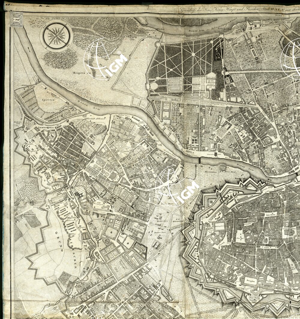 Coi sobborghi, secondo la nuova numerazione delle case, disegnata da Max Grimm e incisa da Gerolamo Benedetti (1810). Scala grafica di 200 Klafter che misura 88 mm., il rapporto è di 1:4.900 circa. Nel titolo in francese, che è situato in alto, a destra del titolo tedesco si legge: fait en 1806 (1808 nel titolo tedesco) a Vienna presso Artaria e C.i, ma questa edizione è del 1810. La carta è in 4 fogli incisi su rame e riuniti su tela. Nell'angolo sud-est è un piano dei dintorni di Vienna alla scala di 1:236.000 circa.