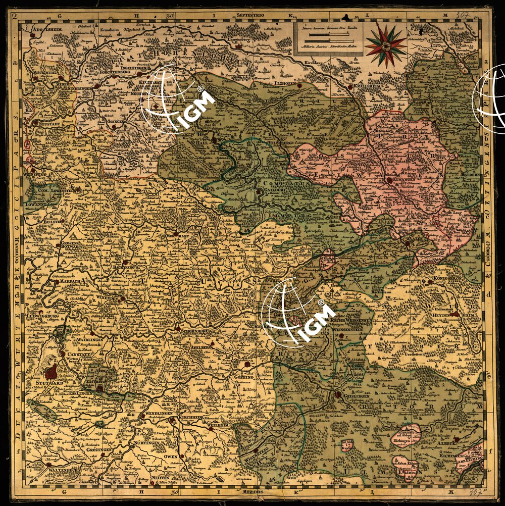 quartieri di Wurtemberg, Costanza, Baden, e Augusta, che ne è la capitale, anzichè possedere 9 fogli dei quali è composta la carta, abbiamo