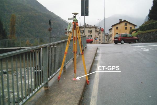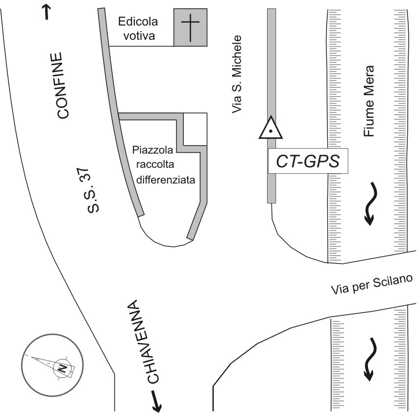 Centrino in acciaio inox del tipo "universale", infisso sul marciapiede che costeggia il Fiume Mera in Via San Michele.