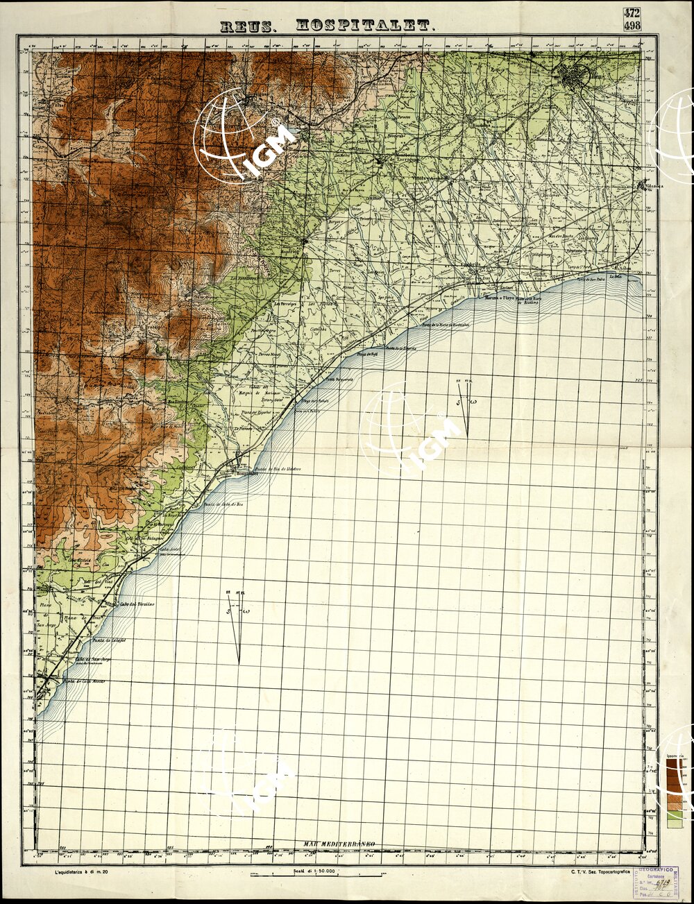 Autore Comando Truppe Volontarie – Sez. Topocartografica. Editore Comando Truppe Volontarie – Sezione Topocartografica – Vittoria. Stampa in policromia . rappresentazione orografica a tinte ipsometriche. Grafia in lingua Spagnola.