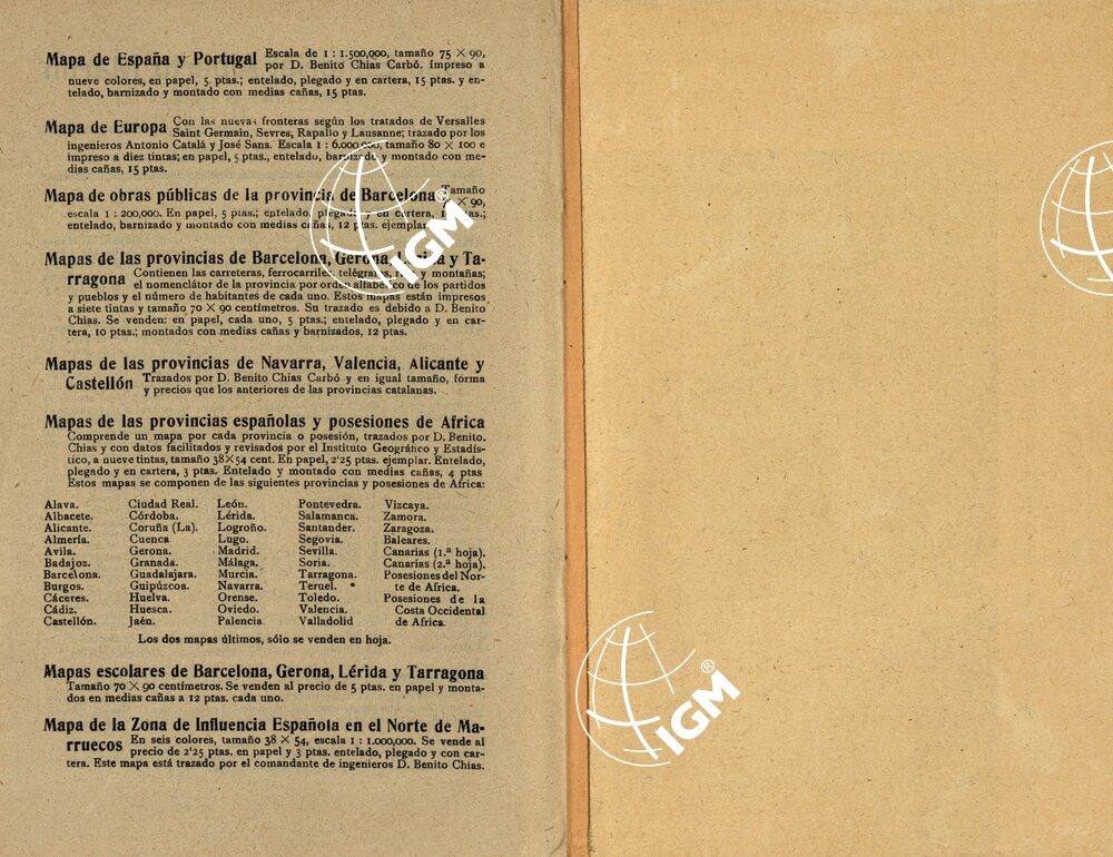Istituto Geografico y Estadistico. Annessal guida alla carta (B0015607). Autore D. Benito Chioas Carbò. Editore Alberto Martin – Barcellona. Grafia in lingua Spagnola.