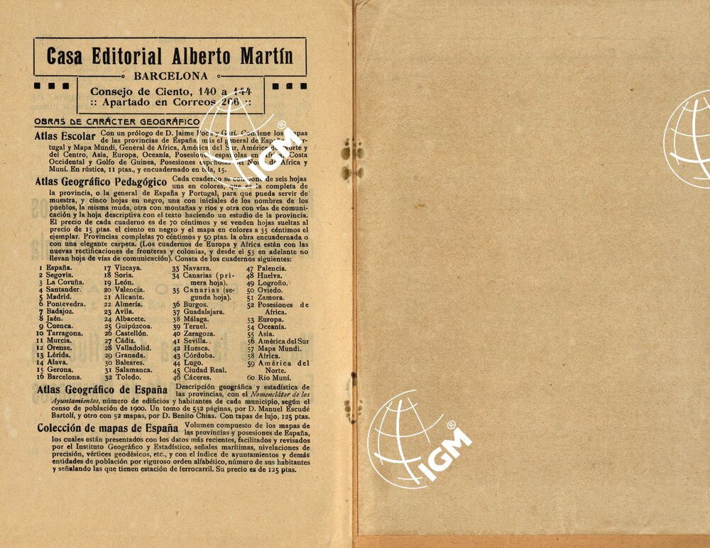 Istituto Geografico y Estadistico. Annessa guida alla carta (B0015572). Autore D. Benito Chias Cabò. Editore Alberto Martin – Barcellona. Grafia in lingua Spagnola.