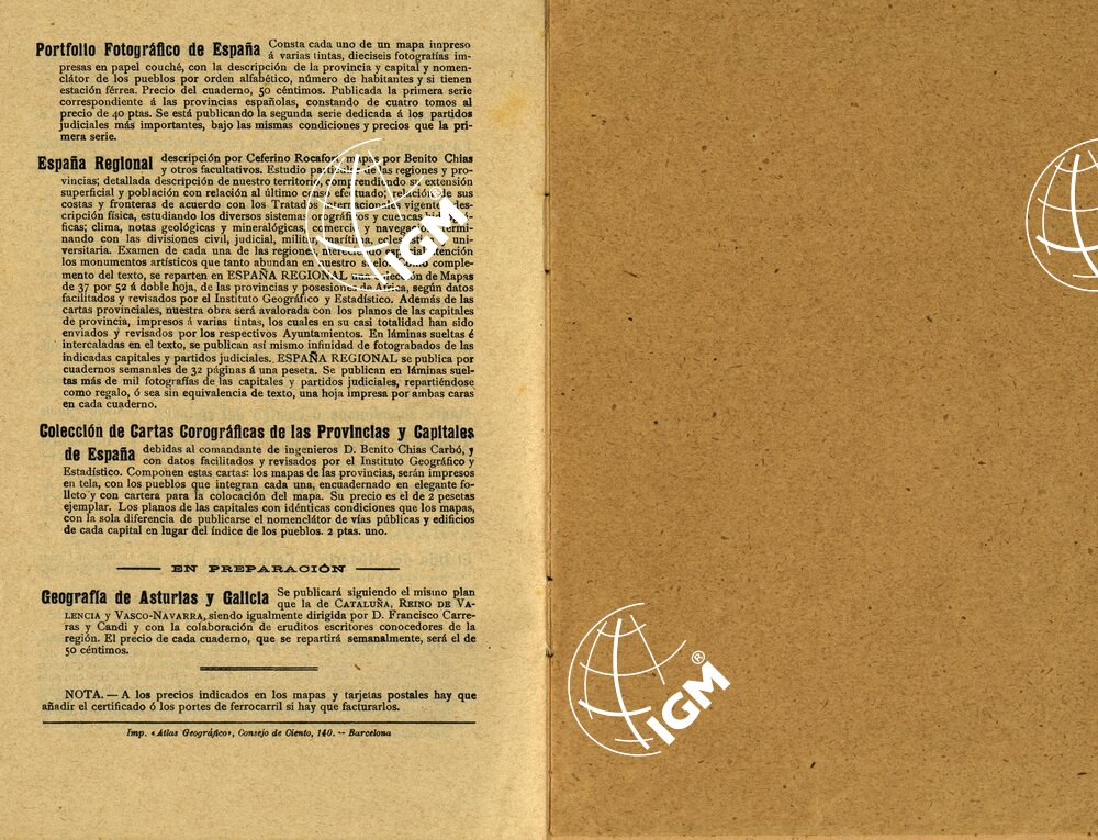Istituto Geografico y Estadistico. Guida annessa alla carta (B0015562). Autore D. Benito Chias Carbò. Editore Alberto Martin – Barcellona. Grafia in lingua Spagnola.