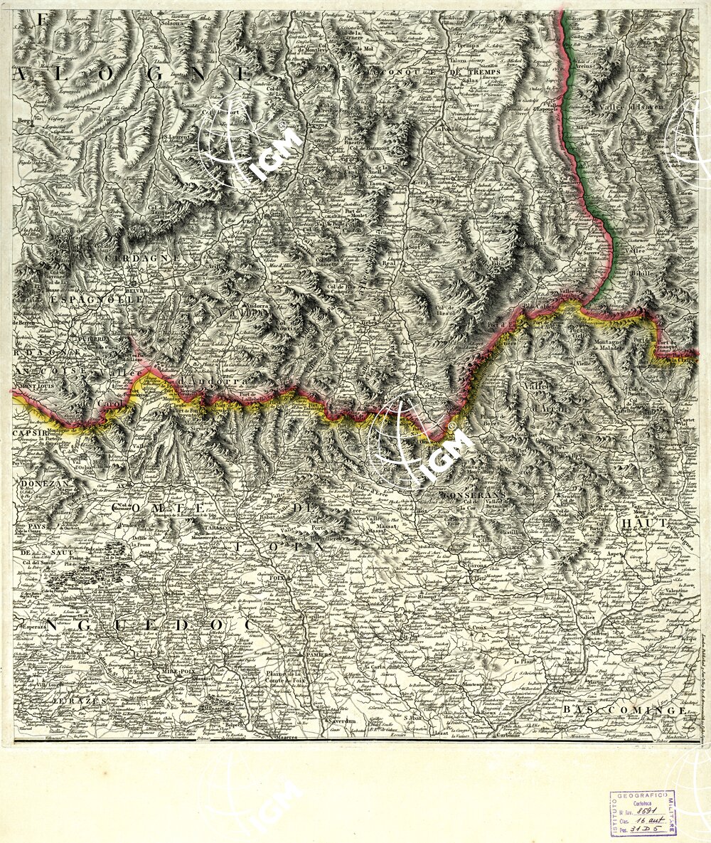 Autore Roussel e Blottiere. Editore A. Arrowsmith. London. Incisione su rame colorata a mano. Rappresentazione orografica a tratteggio. Grafia in lingua Inglese e Spagnola.