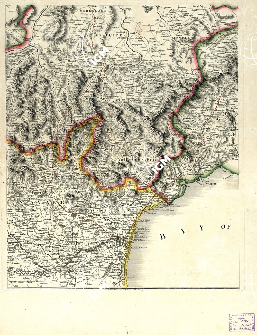 Autore Roussel e Blottiere. Editore A. Arrowsmith. London. Incisione su rame colorata a mano. Rappresentazione orografica a tratteggio. Grafia in lingua Inglese e Spagnola.