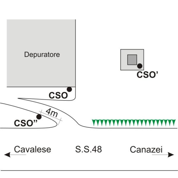 | Contrassegni | [{"simbolo_contrassegno":"B1","materializzazione":"(CSO) – Bullone infisso nella facciata lato strada del depuratore comunale in corrispondenza dello spigolo destro."},{"simbolo_contrassegno":"B4","materializzazione":"(CSO') – Centrino universale infisso alla sommit\u00e0 del basamento rivestito in pietra della fognatura in corrispondenza dello spigolo lato strada ad est."},{"simbolo_contrassegno":"B7","materializzazione":"(CSO'') – Centrino di superficie in ghisa del Catasto di Trento infisso al lato della rampa di accesso al depuratore vicino alla strada statale. Coincidente con Punto Fiduciale n.235-PF.53."}] |