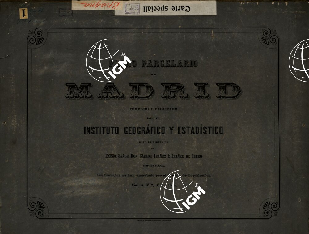 Instituto Geografico y Estadistico bajo la direccion del Excm sen. Don Carlos Ibanez é Ibanez de Ibero. La carta si compone di num. 16 fogli. E’ in edizione litografica stampata in nero. Rappresenta la pianta della città di Madrid. E’ ricca di dettagli, ed accuratamente compilata. Le curve altimetriche sono tracciate per l’equidistanza di 1 metro.
