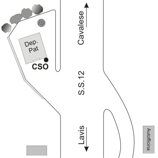 [{"simbolo_contrassegno":"B1","materializzazione":"(CSO) – Bullone della Provincia Autonoma di Trento infisso sulla facciata del deposito suddetto presso lo spigolo di destra."}]