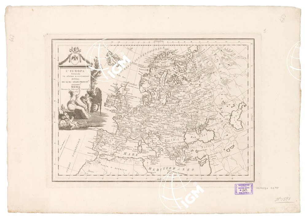 CALCOGRAFIA CAMERALE – L’EUROPA SECONDO LE ULTIME OSSERVAZIONI DIVISA NE’ SUOI STATI PRINCIPALI – FOGLIO 1