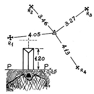 | Materializzazione | Segnale sul monte. Centrino di zinco infisso in roccia con sovrastante pilastrino in ferro. Riferimenti:come da pianta. |