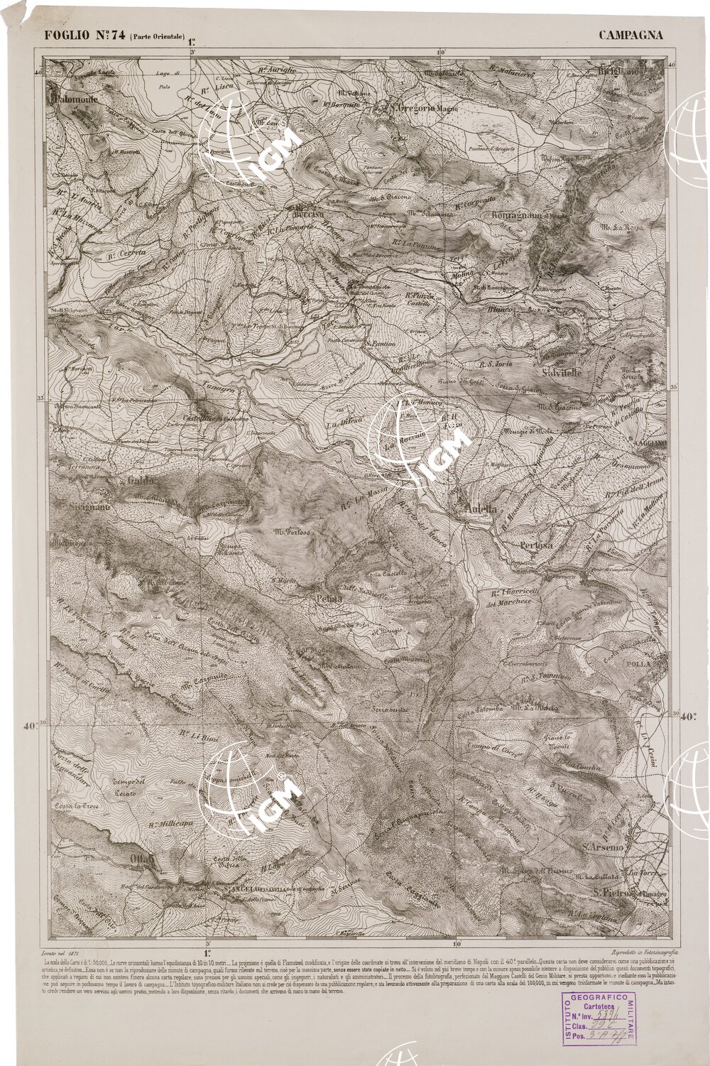 CARTA DELL’ ITALIA MERIDIONALE EDITA DALL’ISTITUTO TOPOGRAFICO MILITARE ITALIANO – Foglio 74 parte orientale