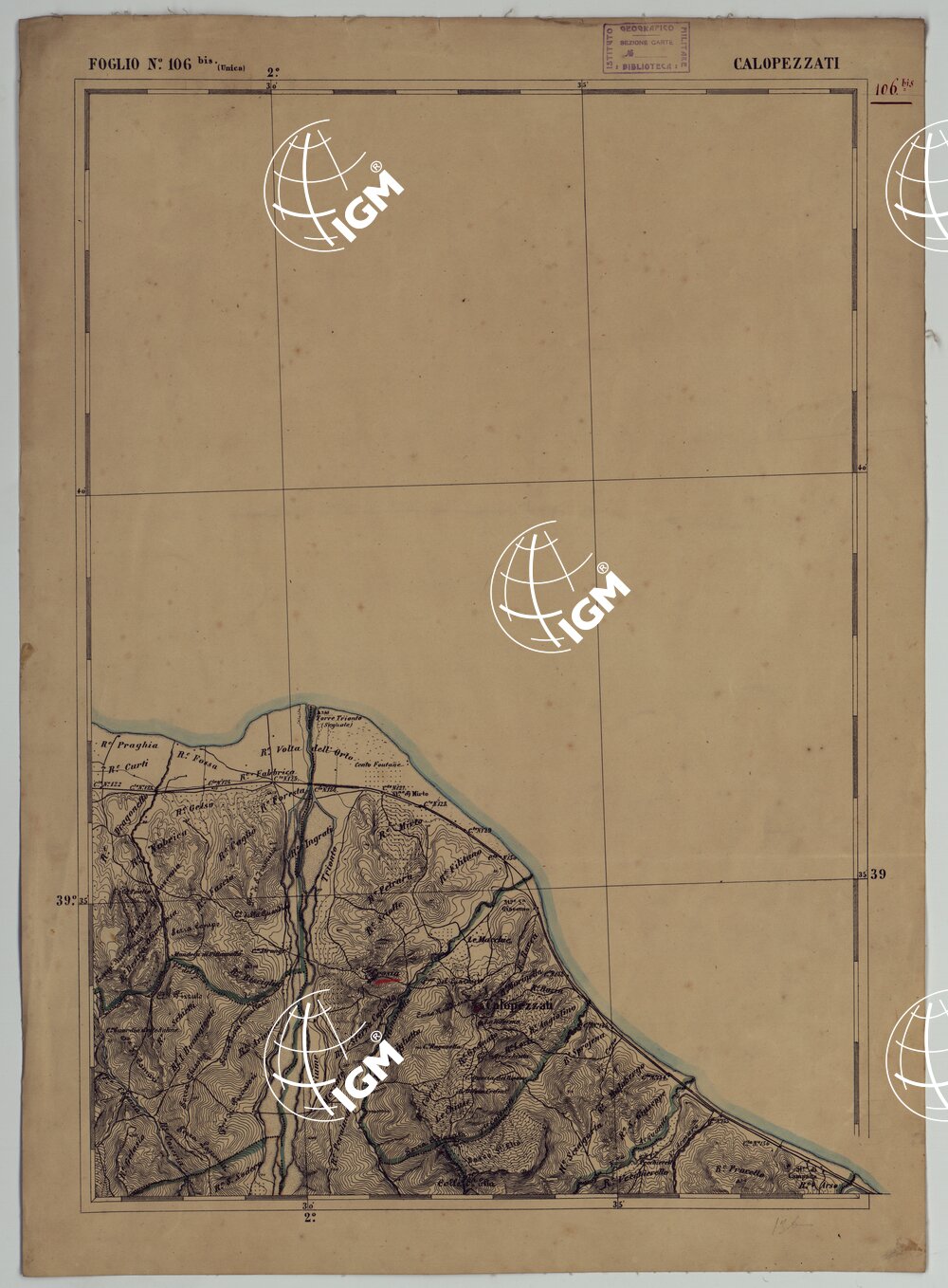 CARTA D’ITALIA – FOGLIO 106 BIS CALOPEZZATI.