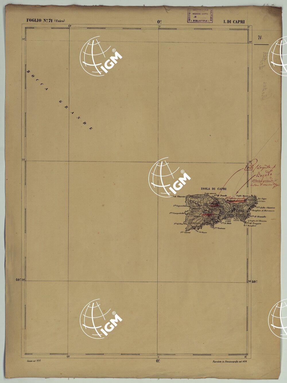 CARTA D’ITALIA – FOGLIO 71 ISOLA DI CAPRI.