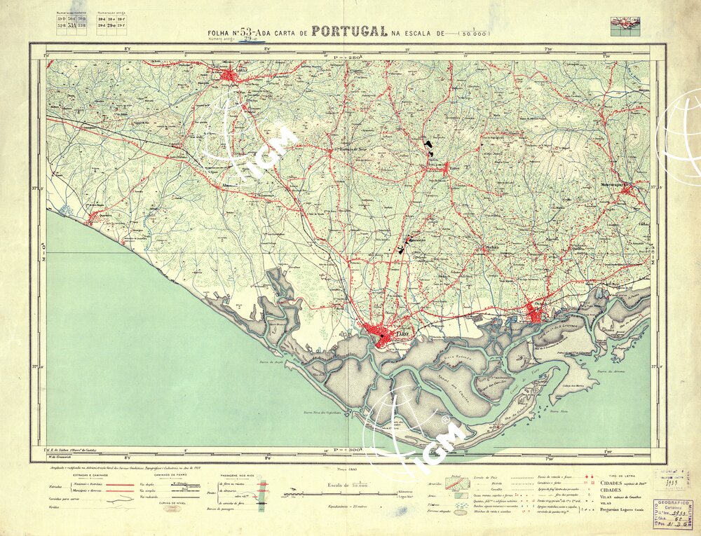 Direcçao Geral dos Trabalhos Geodèsicos e Topograficos Lisboa. Stampa in policroma a curve di livello.