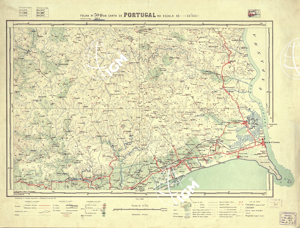 Direcçao Geral dos Trabalhos Geodèsicos e Topograficos Lisboa. Stampa in policroma a curve di livello.