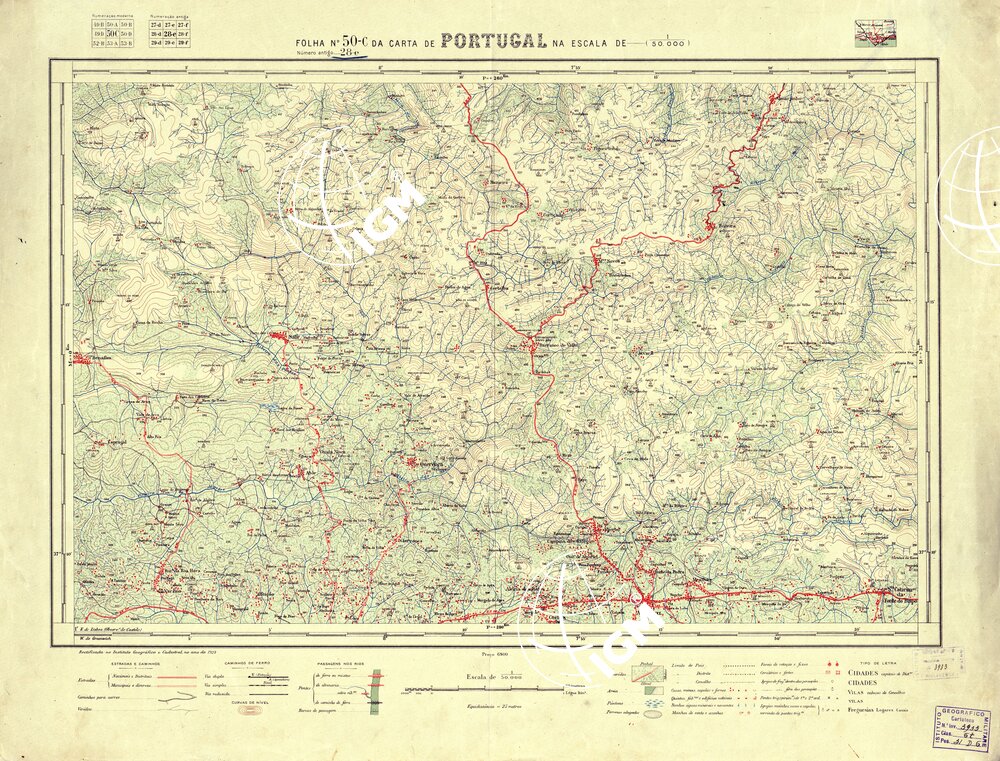 Direcçao Geral dos Trabalhos Geodèsicos e Topograficos Lisboa. Stampa in policroma a curve di livello.