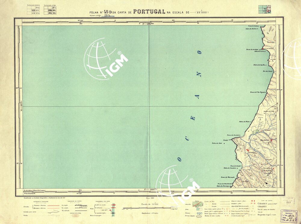 Direcçao Geral dos Trabalhos Geodèsicos e Topograficos Lisboa. Stampa in policroma a curve di livello.