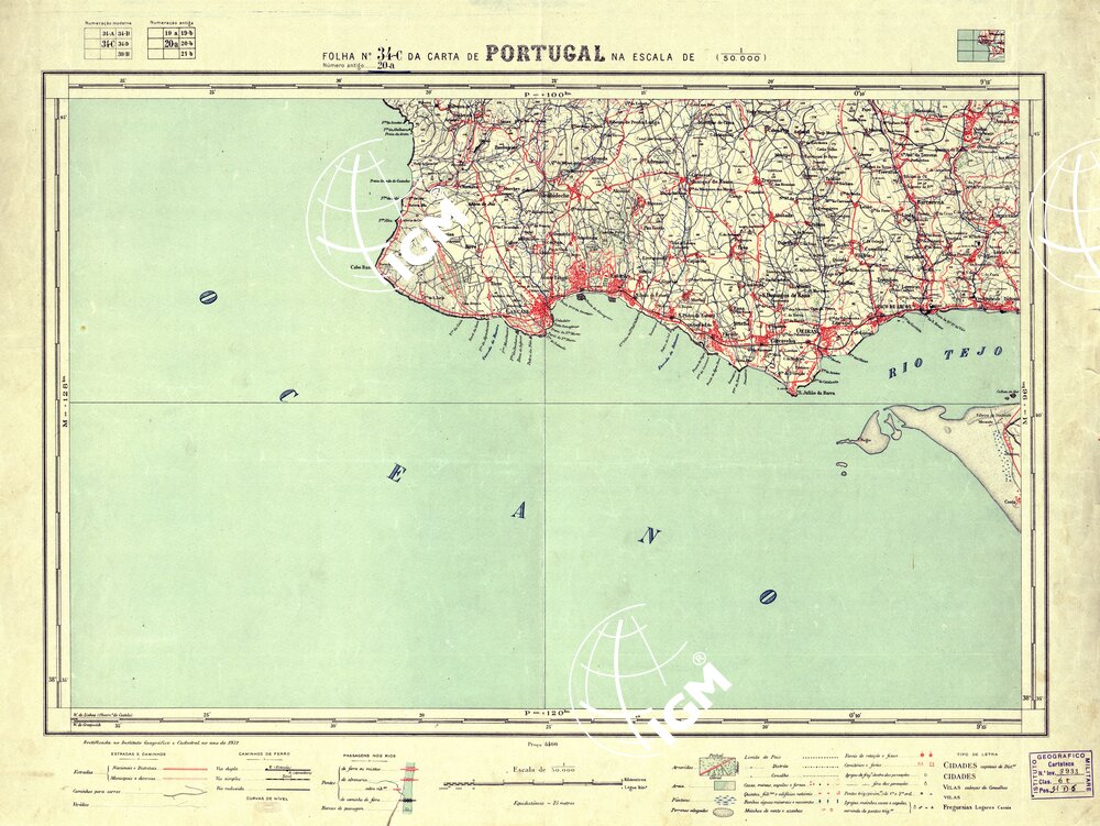 Direcçao Geral dos Trabalhos Geodèsicos e Topograficos Lisboa. Stampa in policroma a curve di livello.