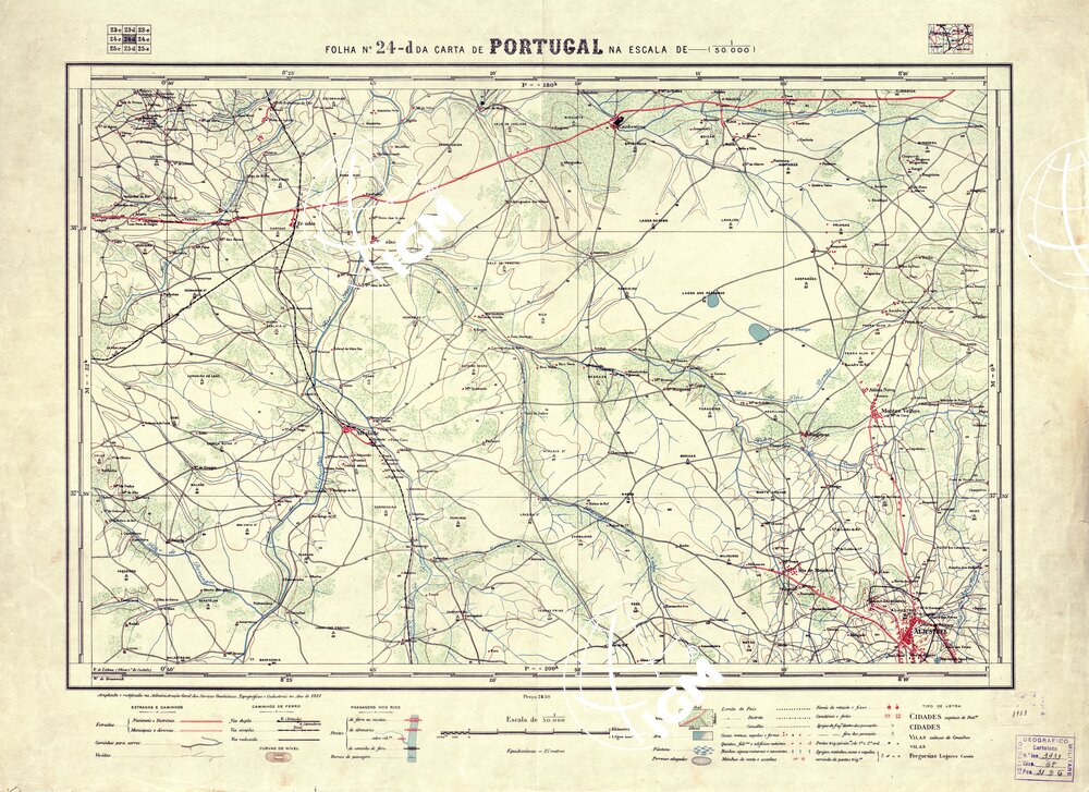 Direcçao Geral dos Trabalhos Geodèsicos e Topograficos Lisboa. Stampa in policroma a curve di livello.