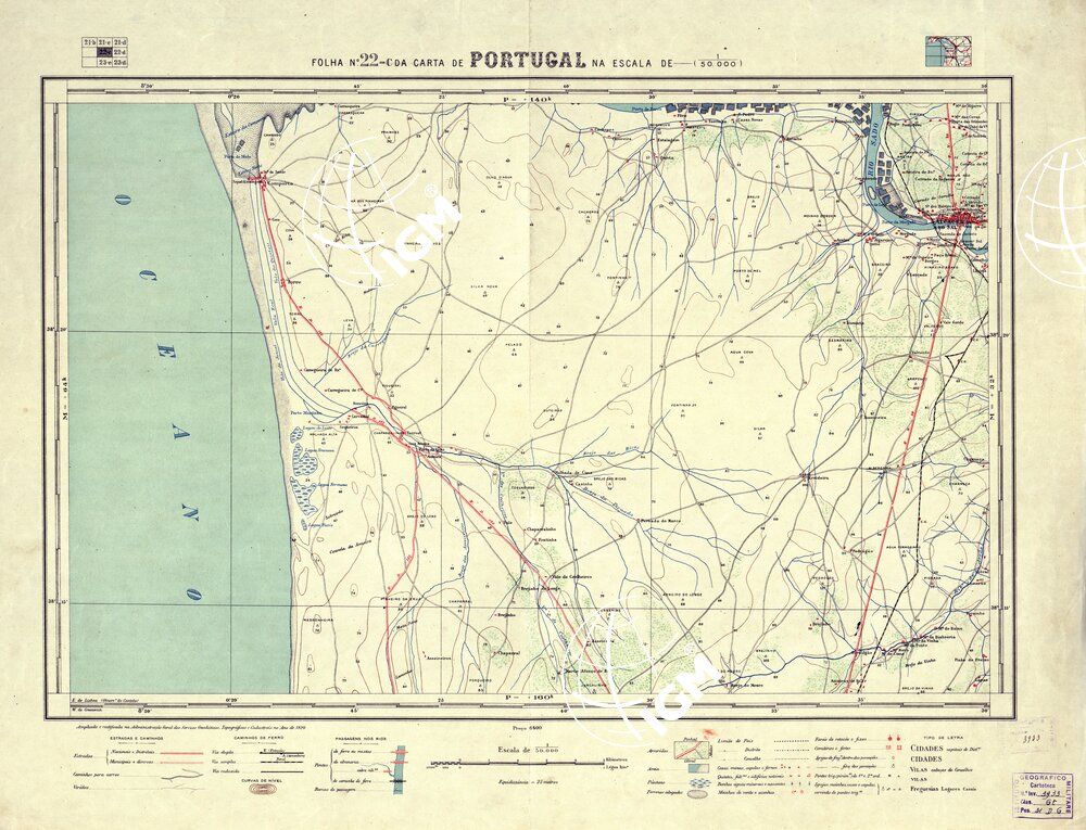 Direcçao Geral dos Trabalhos Geodèsicos e Topograficos Lisboa. Stampa in policroma a curve di livello.