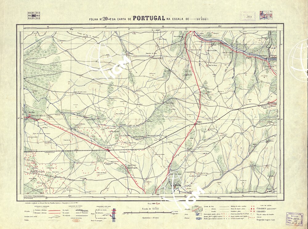 Direcçao Geral dos Trabalhos Geodèsicos e Topograficos Lisboa. Stampa in policroma a curve di livello.