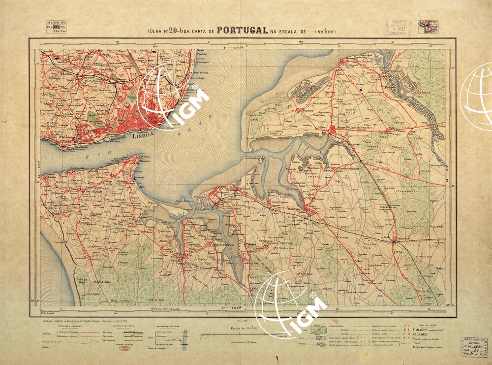 Direcçao Geral dos Trabalhos Geodèsicos e Topograficos Lisboa. Stampa in policroma a curve di livello.