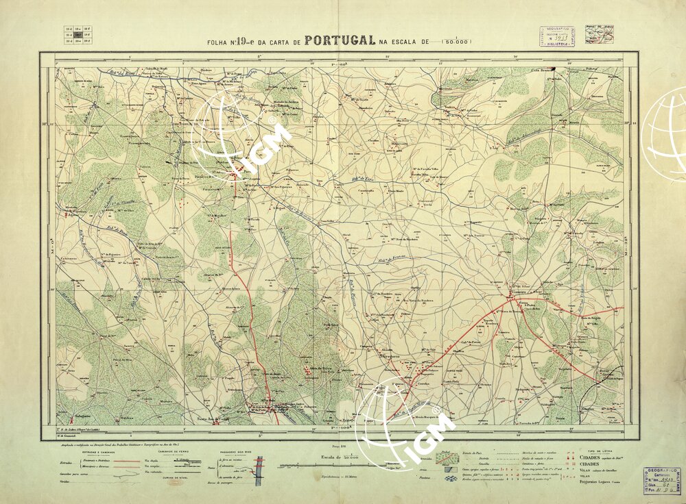 Direcçao Geral dos Trabalhos Geodèsicos e Topograficos Lisboa. Stampa in policroma a curve di livello.