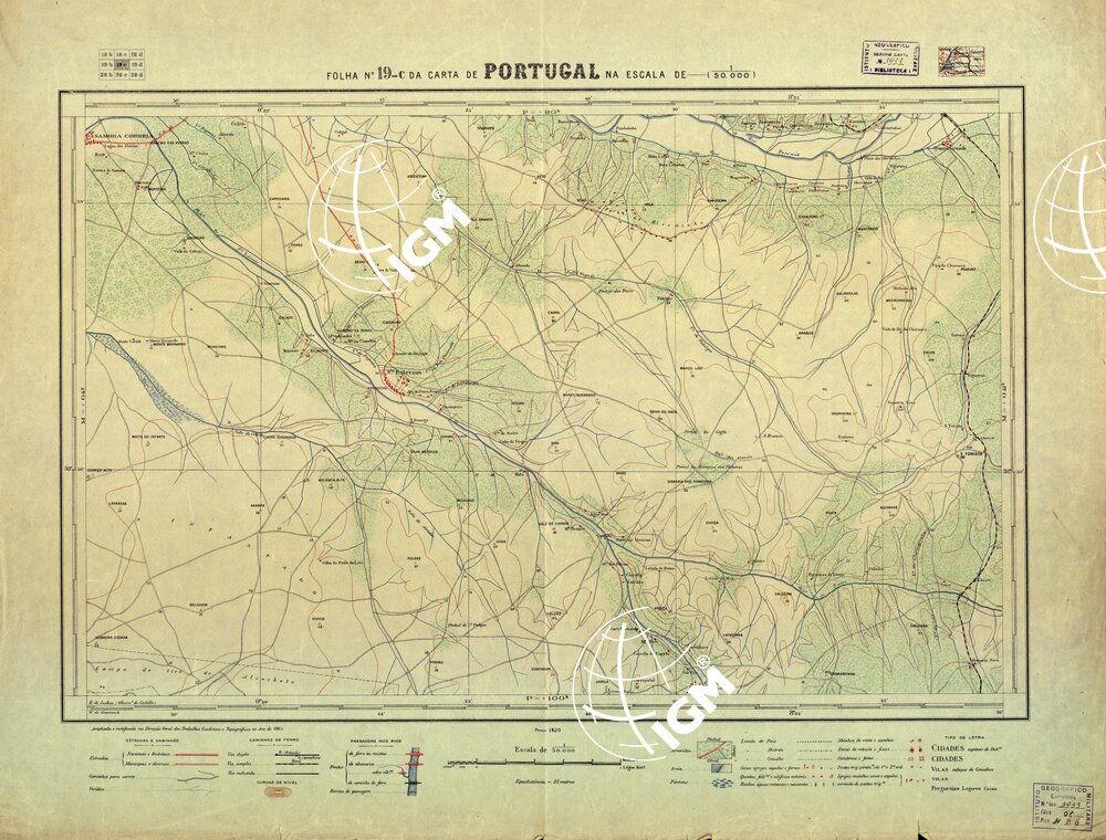 Direcçao Geral dos Trabalhos Geodèsicos e Topograficos Lisboa. Stampa in policroma a curve di livello.
