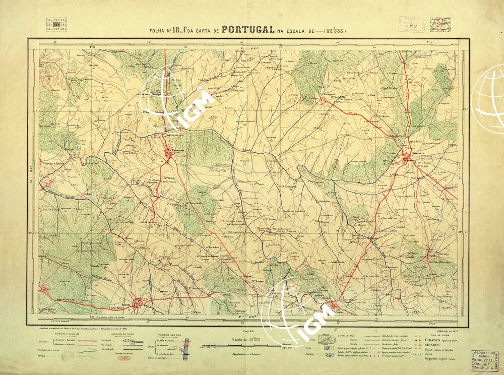 Direcçao Geral dos Trabalhos Geodèsicos e Topograficos Lisboa. Stampa in policroma a curve di livello.