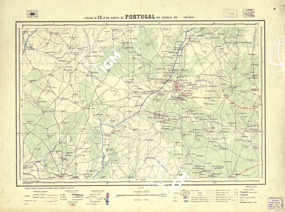 Direcçao Geral dos Trabalhos Geodèsicos e Topograficos Lisboa. Stampa in policroma a curve di livello.