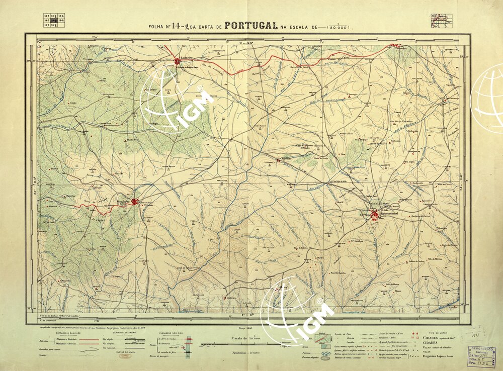 Direcçao Geral dos Trabalhos Geodèsicos e Topograficos Lisboa. Stampa in policroma a curve di livello.