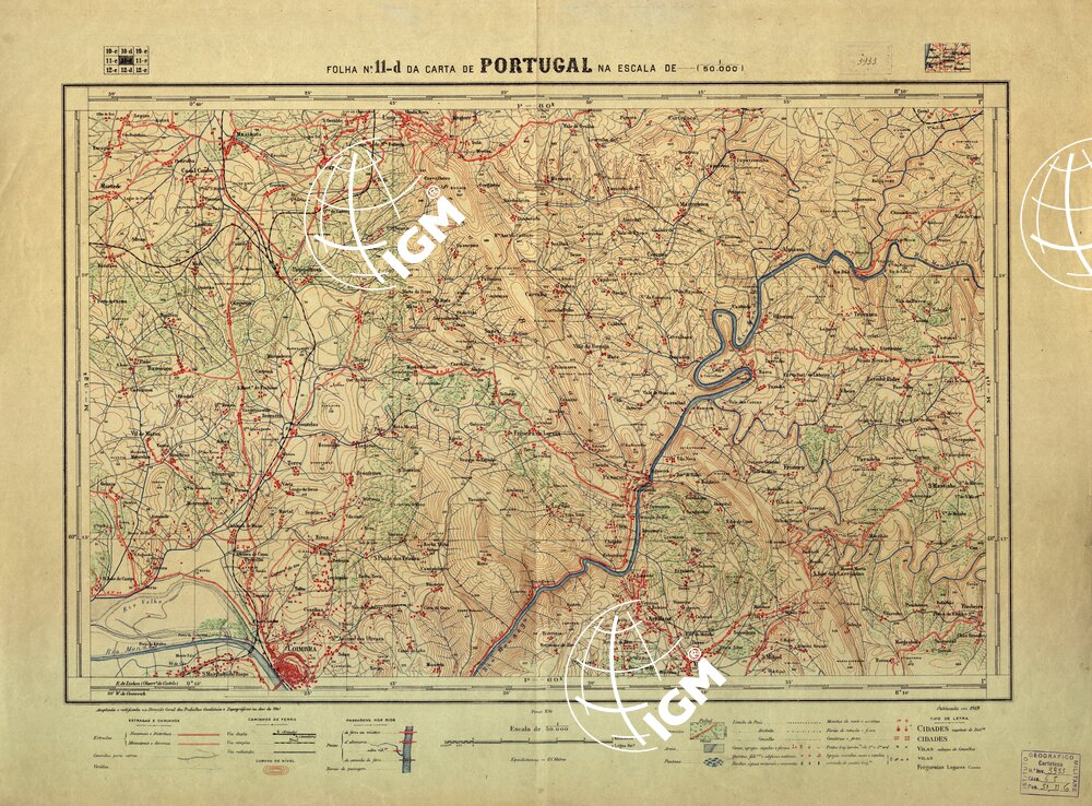 Direcçao Geral dos Trabalhos Geodèsicos e Topograficos Lisboa. Stampa in policroma a curve di livello.