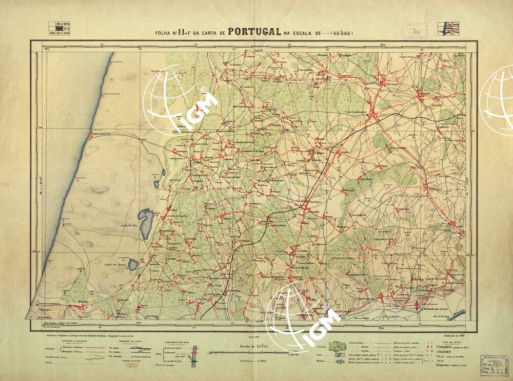 Direcçao Geral dos Trabalhos Geodèsicos e Topograficos Lisboa. Stampa in policroma a curve di livello.