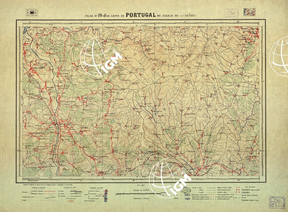 Direcçao Geral dos Trabalhos Geodèsicos e Topograficos Lisboa. Stampa in policroma a curve di livello.