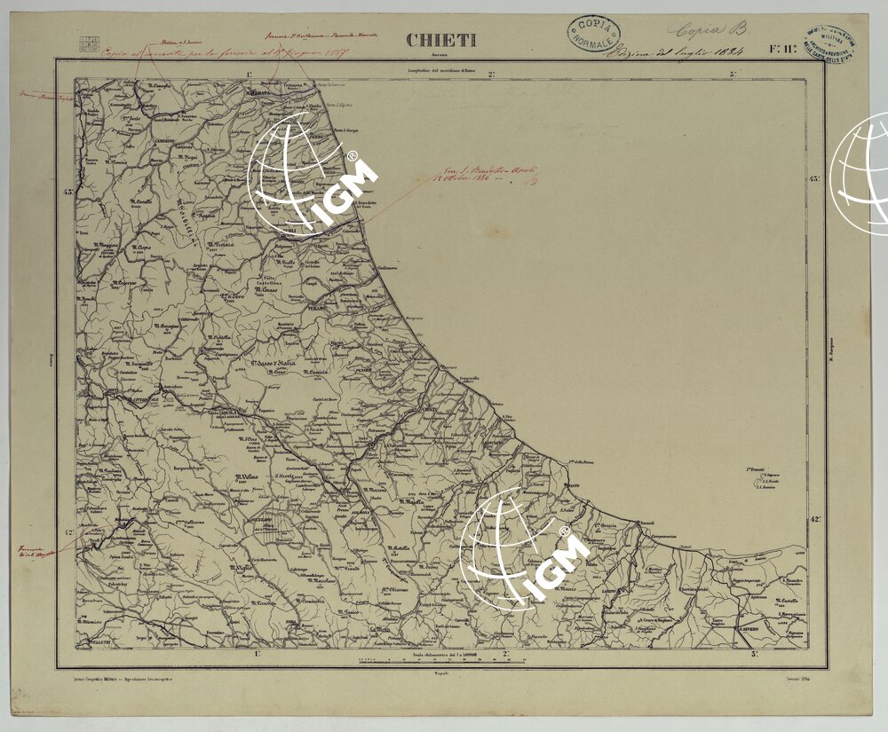 CARTA D’ITALIA COPIA AL CORRENTE PER LE FERROVIE – F°.11 CHIETI.