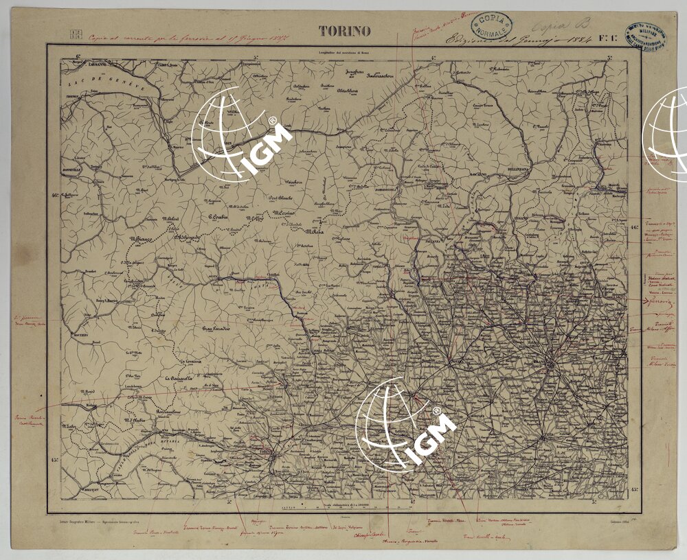 CARTA D’ITALIA COPIA AL CORRENTE PER LE FERROVIE – F°.1 TORINO.