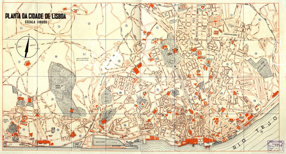 Norberto de Araujo e Antonio Soares. Livraria Portugàlia Lisbona. Stampa in policroma planimetrica. Annesso un fascicolo illustrativo (in lingua inglese) ed un elenco alfabetico delle strade (in lingua porteghese).